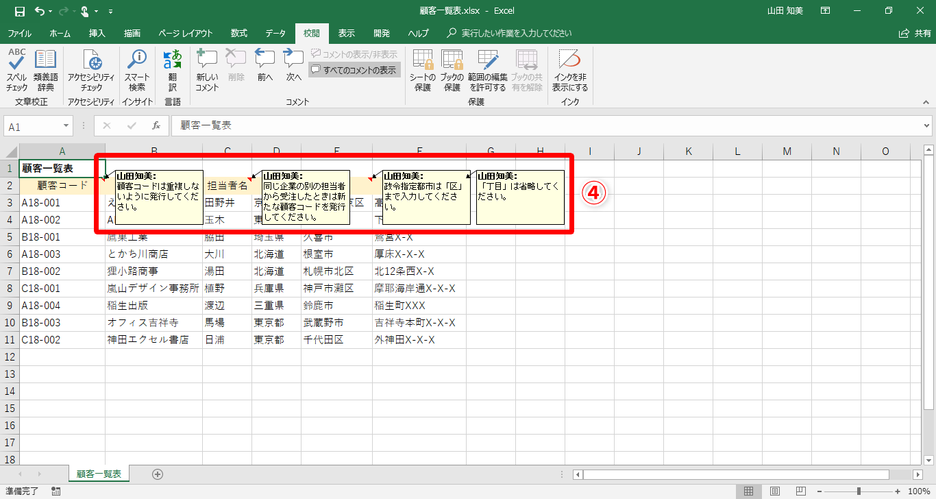 【Excel】コメントを付けすぎて重要な情報が埋もれてしまった!エクセルの表に付けたコメントをカラフルにして目立たせるテク