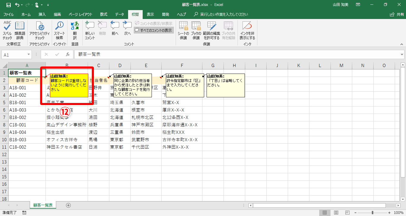 【Excel】コメントを付けすぎて重要な情報が埋もれてしまった!エクセルの表に付けたコメントをカラフルにして目立たせるテク