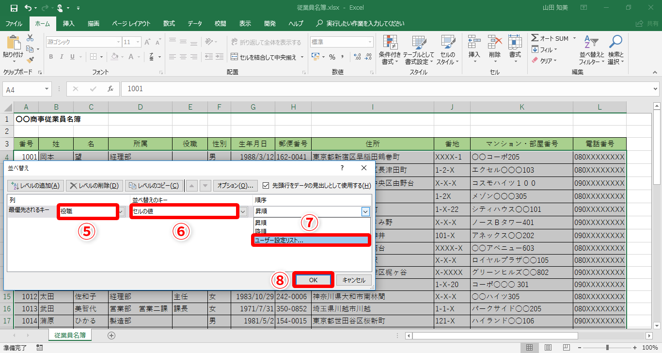 【Excel】名簿を役職の偉い順に並べ替えたい!エクセルの表を自分で決めたルールで並べ替えるテクニック