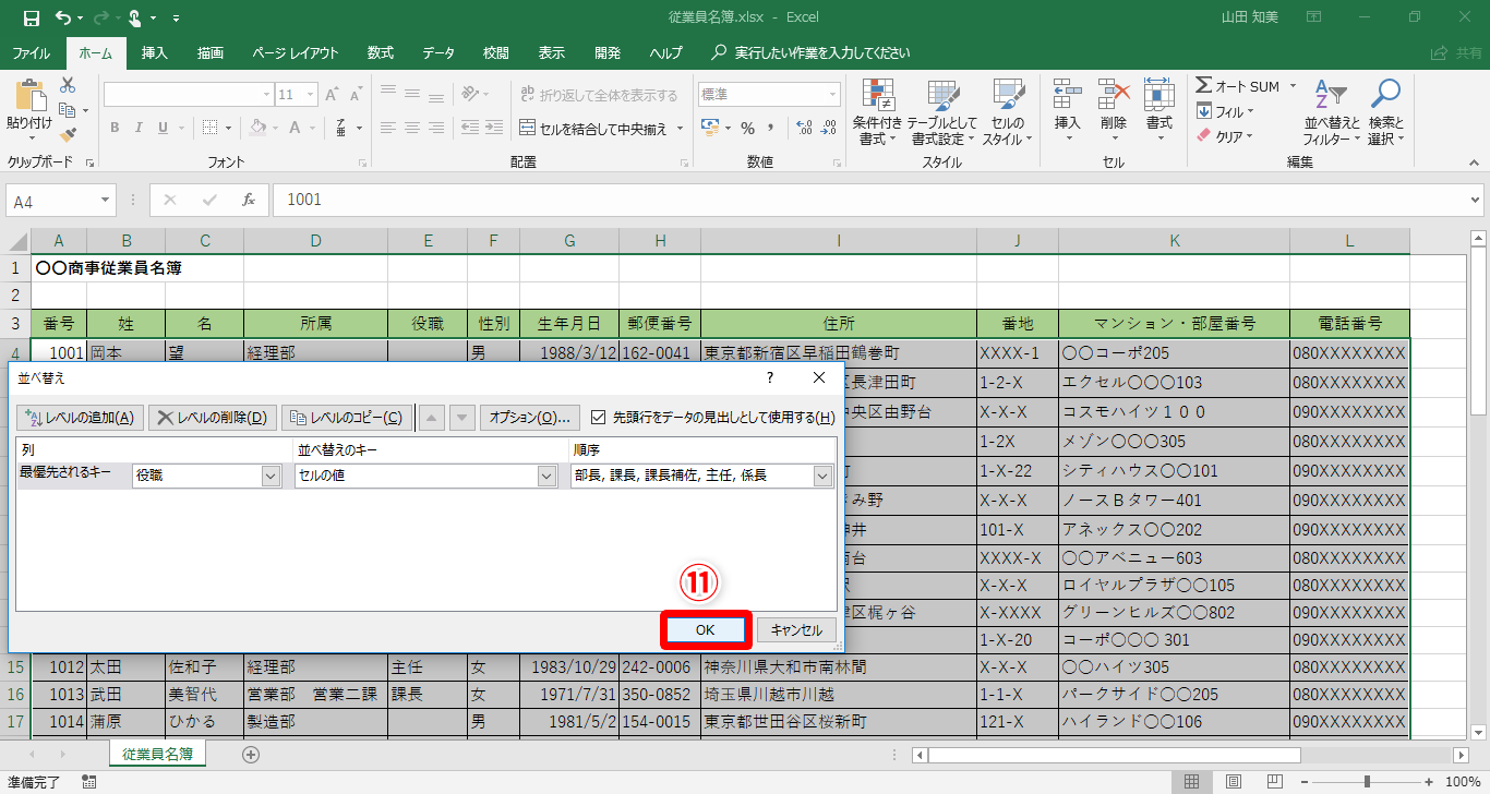 【Excel】名簿を役職の偉い順に並べ替えたい!エクセルの表を自分で決めたルールで並べ替えるテクニック