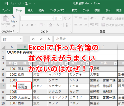 【Excel】住所録を五十音順でうまく並べ替えられない!エクセルで名簿管理に必須のふりがな編集術