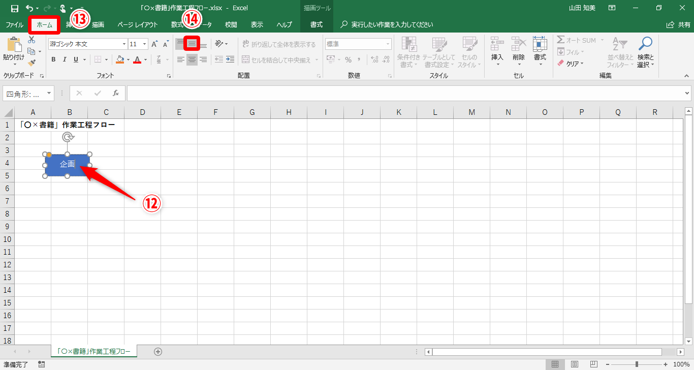 【Excel】作業工程フロー図の見栄えをよくするコツ!エクセルで図形の大きさ、位置、間隔を簡単に揃えるテクニック(8/22)