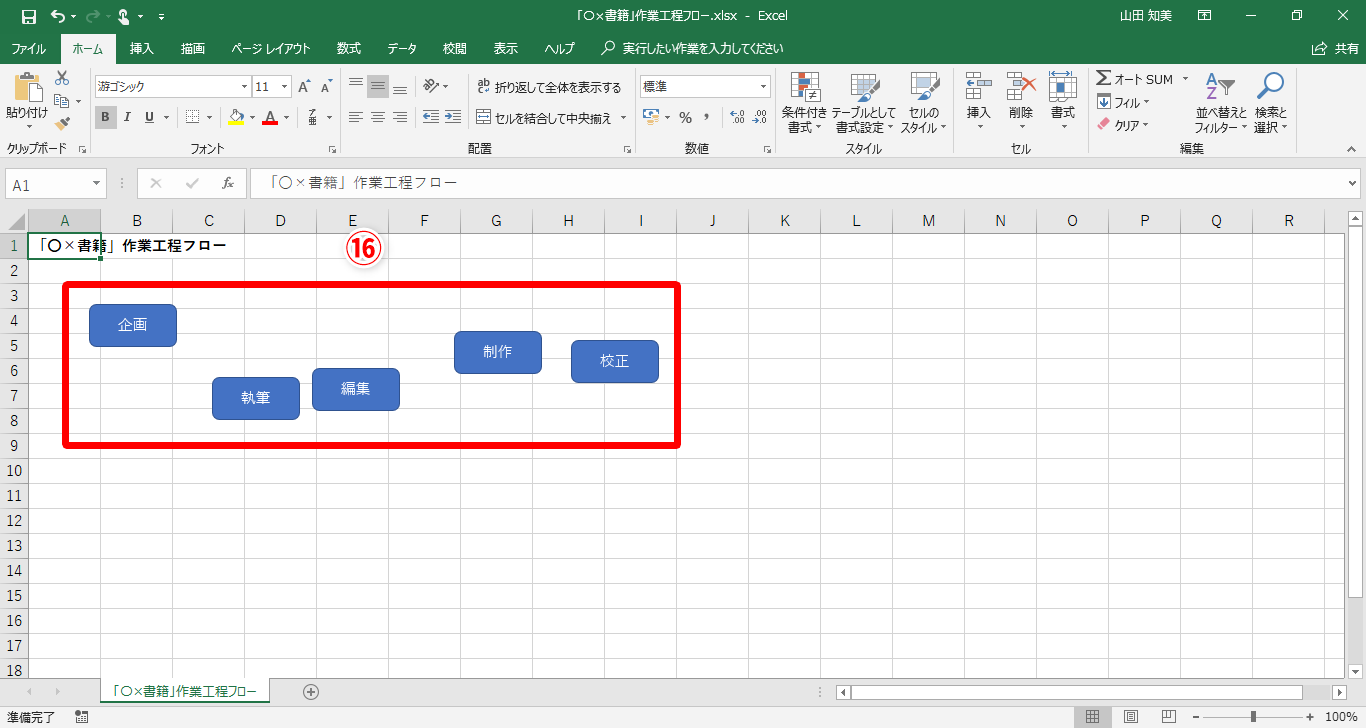 【Excel】作業工程フロー図の見栄えをよくするコツ!エクセルで図形の大きさ、位置、間隔を簡単に揃えるテクニック(10/22)