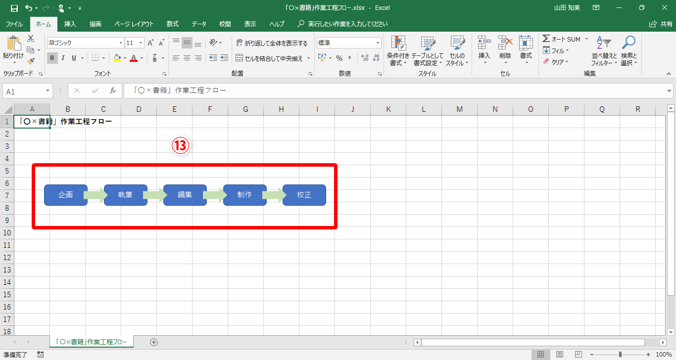【Excel】作業工程フロー図の見栄えをよくするコツ!エクセルで図形の大きさ、位置、間隔を簡単に揃えるテクニック(21/22)