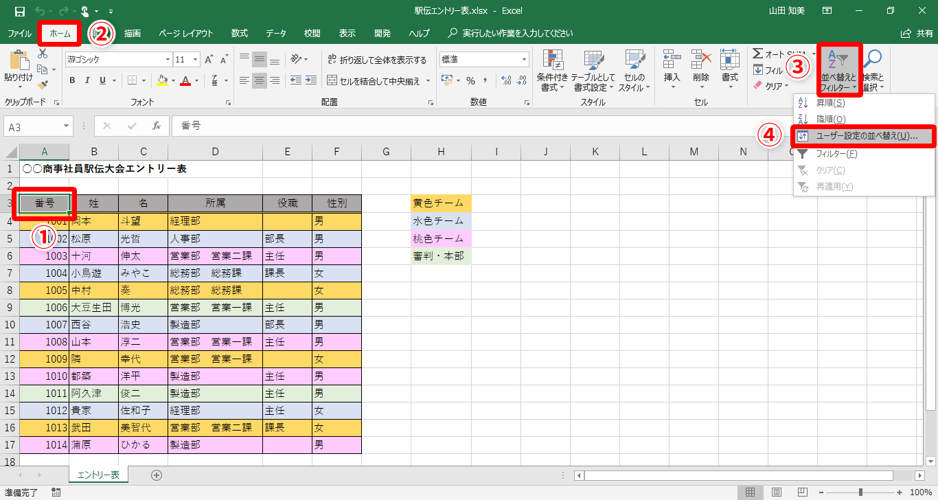 【Excel】表をセルの背景色別に並べ替えたい!エクセルで昇順や降順以外の順番で並べ替えるテクニック