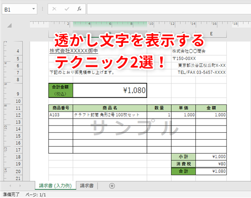 【Excel】下書き用のデータに「サンプル」などの透かしを入れたい!エクセルシートの背景に画像を表示するテク