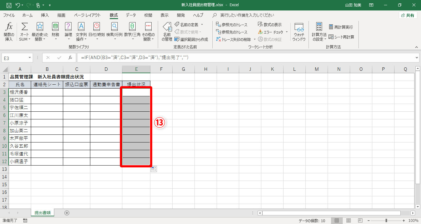 【Excel】提出物が揃ったら自動で「提出完了」と表示させたい!エクセルで大量にある書類の提出状況をチェックするテク