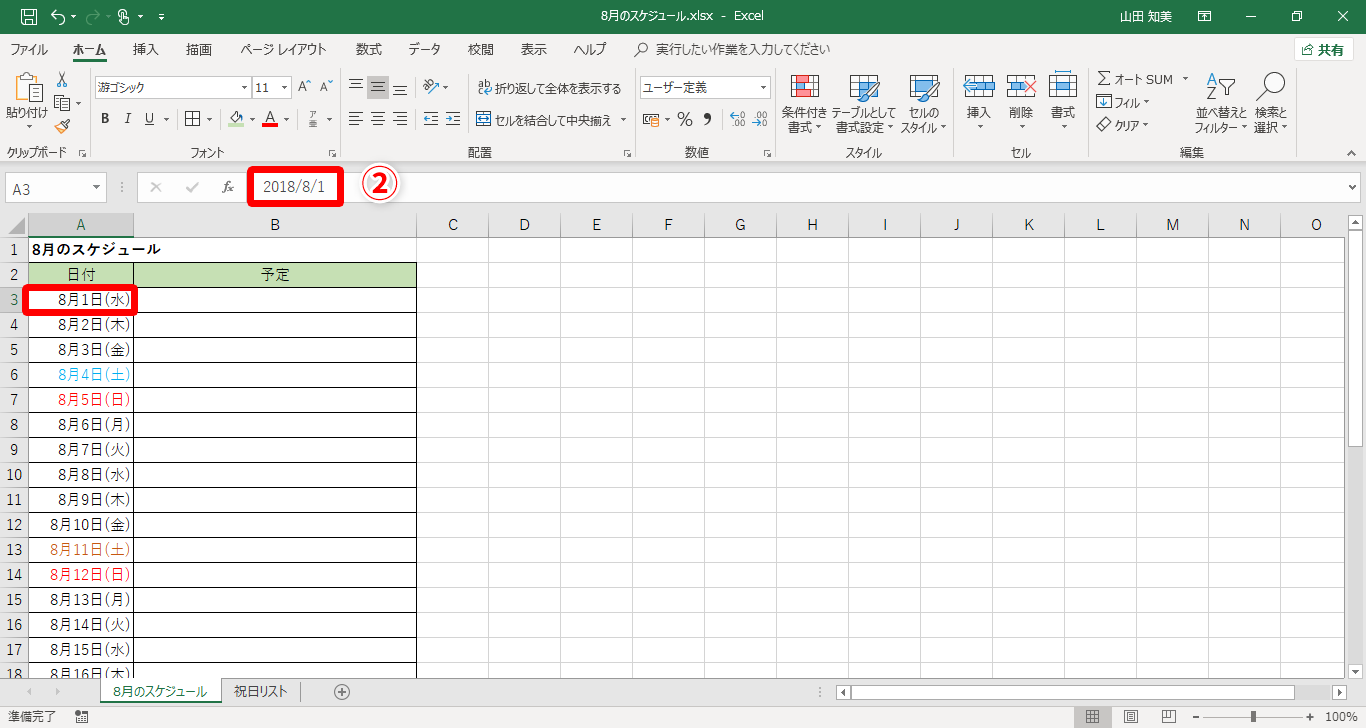 【Excel】スケジュール表の「月」の欄を変更すると日付が自動更新!エクセルで使いまわしに超便利な月間スケジュール表の作成テク