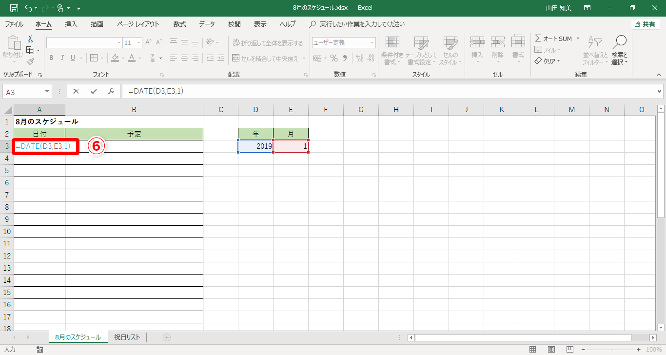 【Excel】スケジュール表の「月」の欄を変更すると日付が自動更新!エクセルで使いまわしに超便利な月間スケジュール表の作成テク