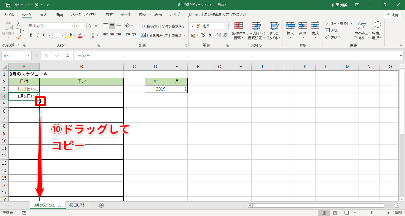 【Excel】スケジュール表の「月」の欄を変更すると日付が自動更新!エクセルで使いまわしに超便利な月間スケジュール表の作成テク