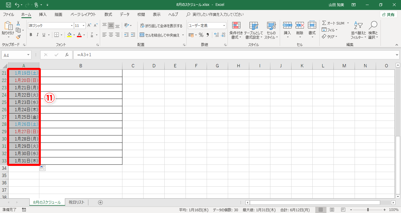 【Excel】スケジュール表の「月」の欄を変更すると日付が自動更新!エクセルで使いまわしに超便利な月間スケジュール表の作成テク