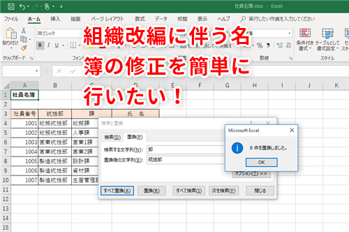 【Excel】また部署名が変わるの?エクセルで名簿の所属名を簡単に変更するテクニック
