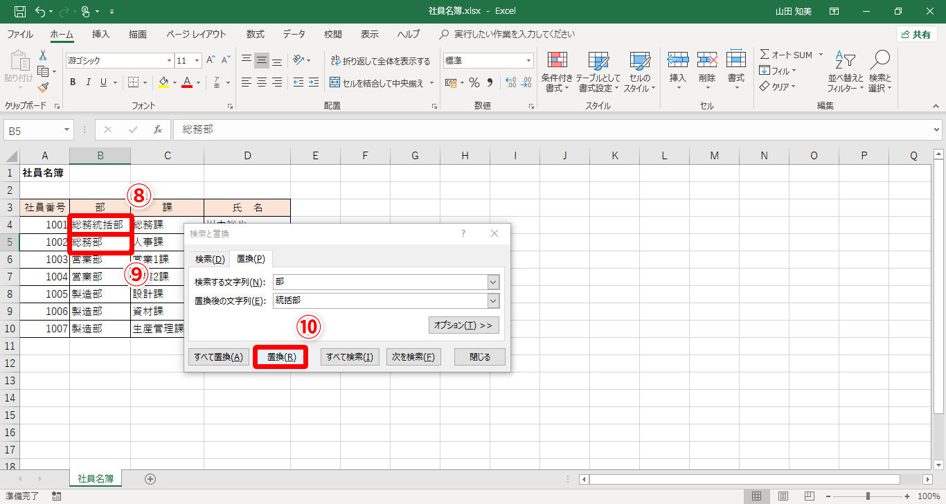 【Excel】また部署名が変わるの?エクセルで名簿の所属名を簡単に変更するテクニック