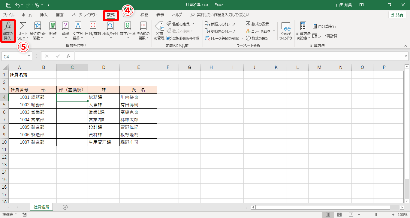 【Excel】名簿で変更前と変更後の部署名を並べたい!エクセルで置換結果を新たな列に挿入するテク