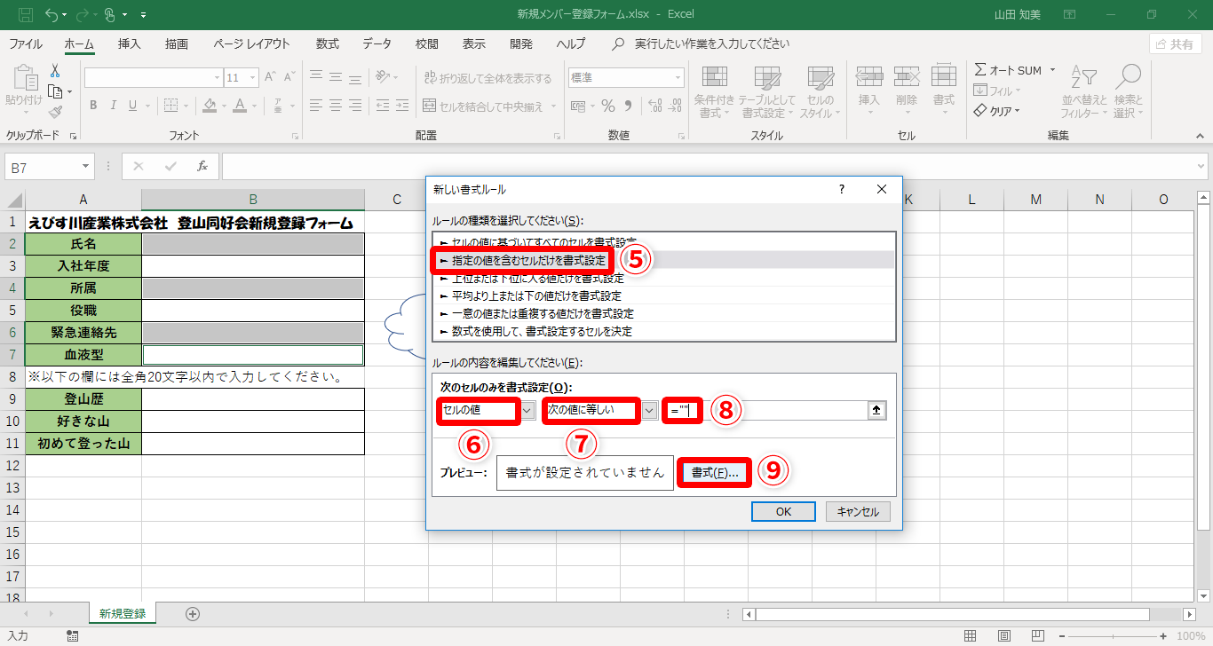 【Excel】未入力の項目に色を付けてお知らせ!エクセルで必須項目の入力漏れを防ぐためのテクニック(4/9)