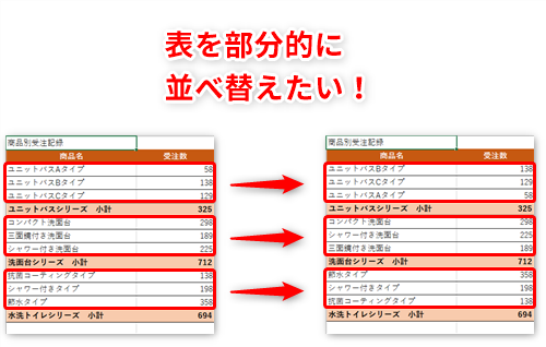 【Excel】表の一部分だけを並べ替えようとしたらうまくいかない!エクセルで部分的に表を並べ替えるときのコツ