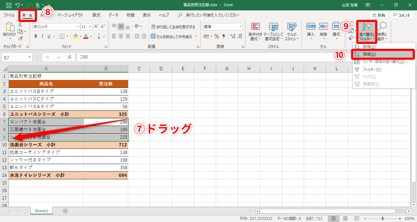 【Excel】表の一部分だけを並べ替えようとしたらうまくいかない!エクセルで部分的に表を並べ替えるときのコツ