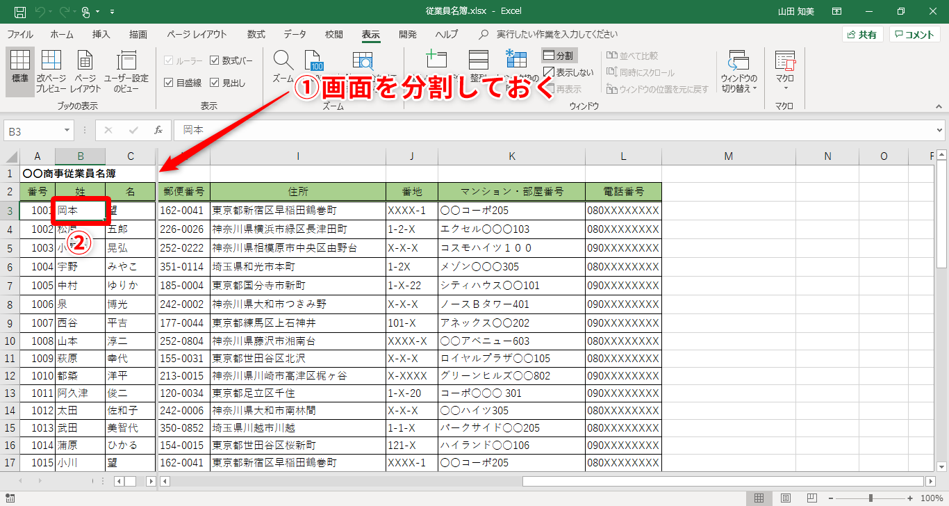 【Excel】画面を分割して必要なデータを1画面に収めよう!エクセルで大きな表をストレスなく操作するテクニック