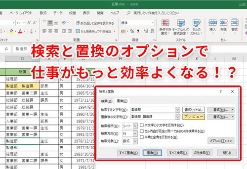【Excel時短】仕事効率が確実に上がる!検索と置換オプションの活用法