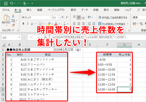 【Excel】「1時間ごとの売上件数」を調べたい時どうする!?エクセルで時間帯別にデータを集計するテクニック