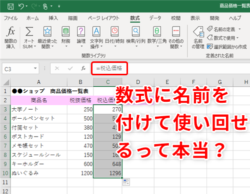 【Excel】複雑な数式を手打ちするのはミスの元!エクセルでよく使う数式を簡単に使い回せるようにするテクニック