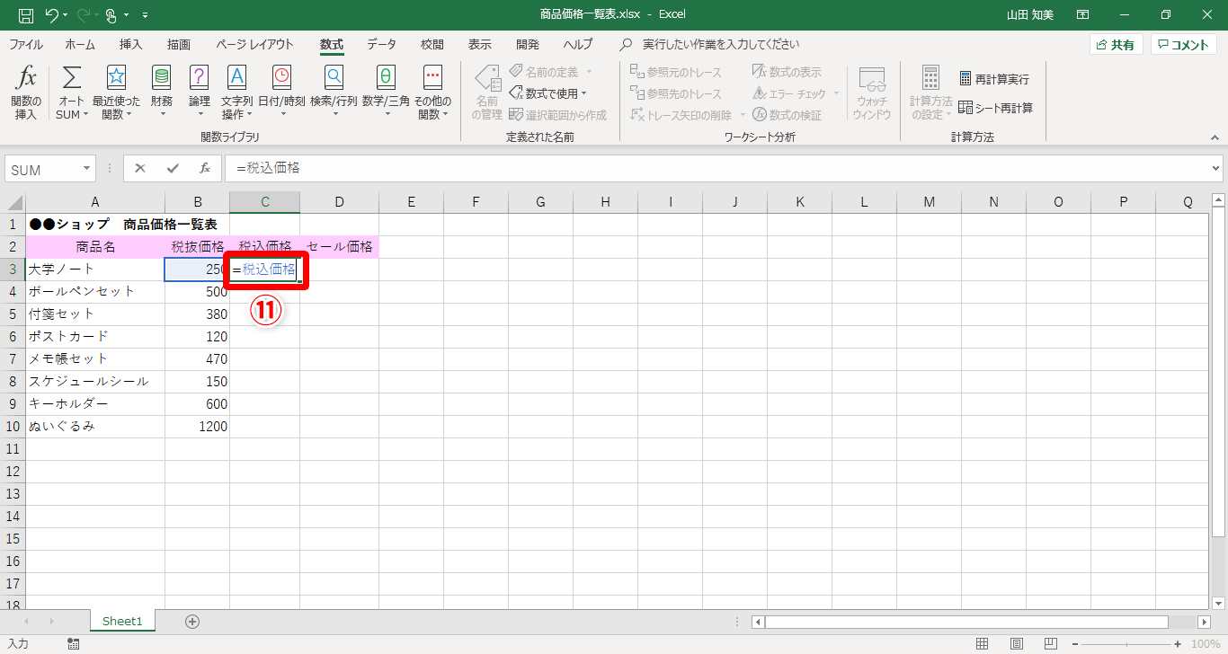 【Excel】複雑な数式を手打ちするのはミスの元!エクセルでよく使う数式を簡単に使い回せるようにするテクニック