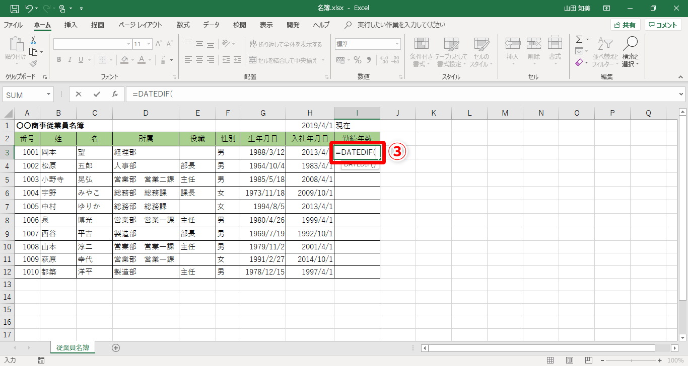 【Excel】勤続年数が自動更新される名簿を作成したい!エクセルで指定した期間の年数を計算するテクニック