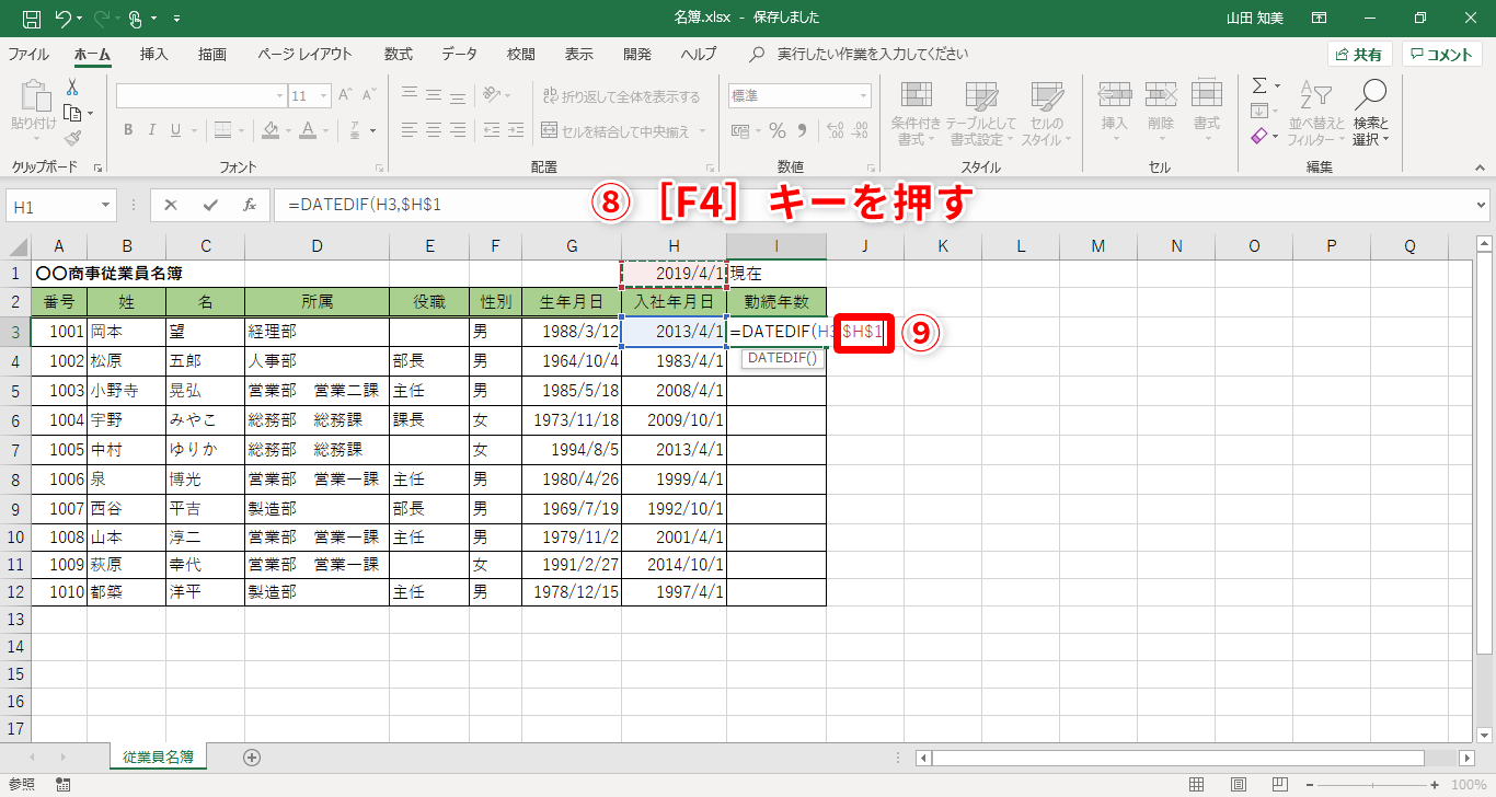 【Excel】勤続年数が自動更新される名簿を作成したい!エクセルで指定した期間の年数を計算するテクニック