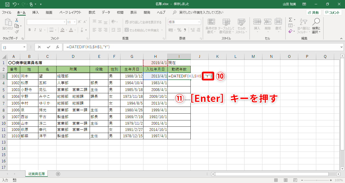 【Excel】勤続年数が自動更新される名簿を作成したい!エクセルで指定した期間の年数を計算するテクニック