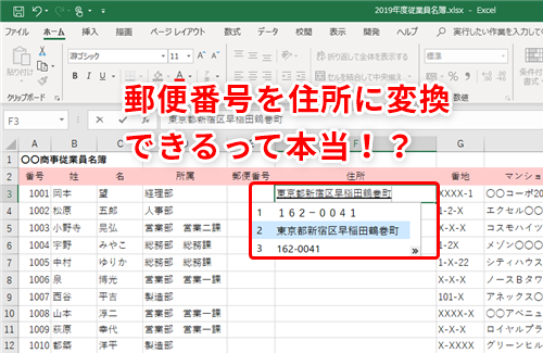 【Excel】住所録の作成にかかる時間を大幅に短縮!エクセルで郵便番号⇔住所を変換する裏ワザ