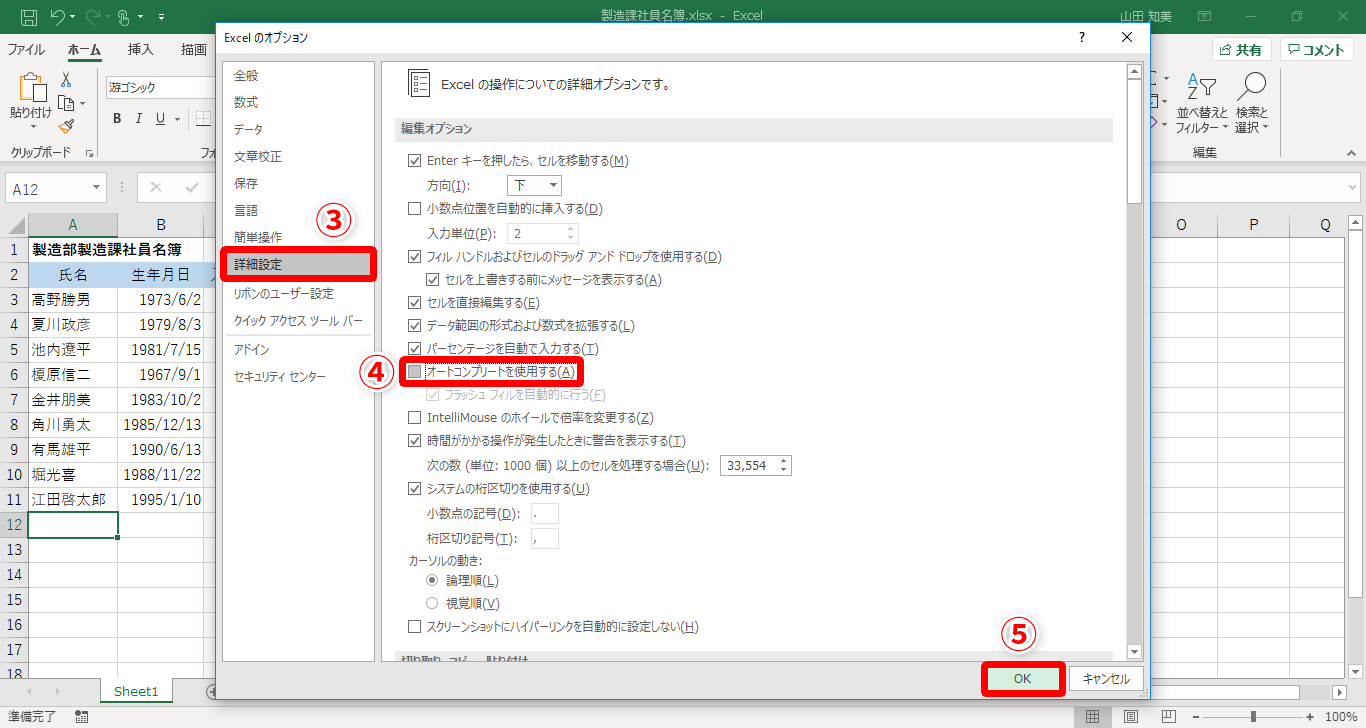 【Excel】おせっかい機能を無効化したい!邪魔な入力候補や勝手にデータを変える機能をオフにするテク