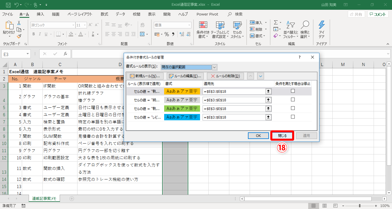 【Excel】管理が簡単で見やすい進捗表を作って仕事を効率化!エクセルでステータスを選ぶだけで色が変わる表を作る方法