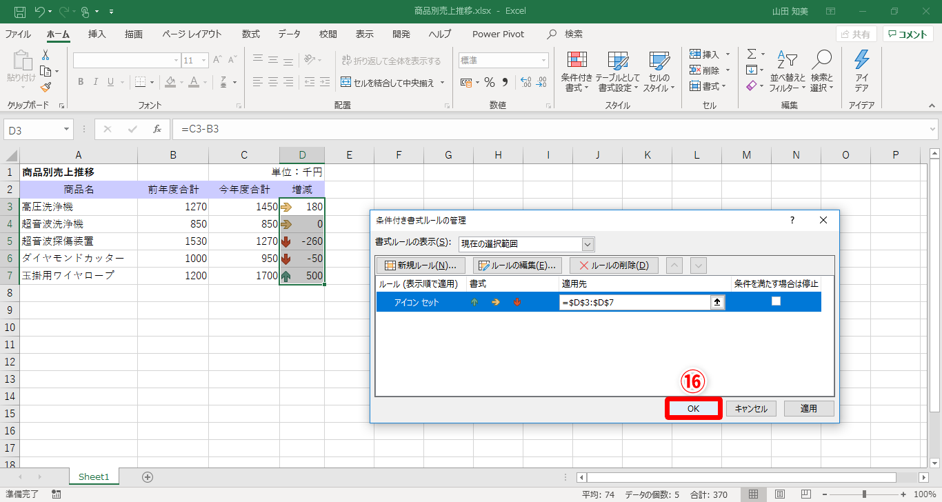 【Excel】数値の増減がパッと見でわかりやすくなる!エクセルでセル内にアイコンを表示するテク