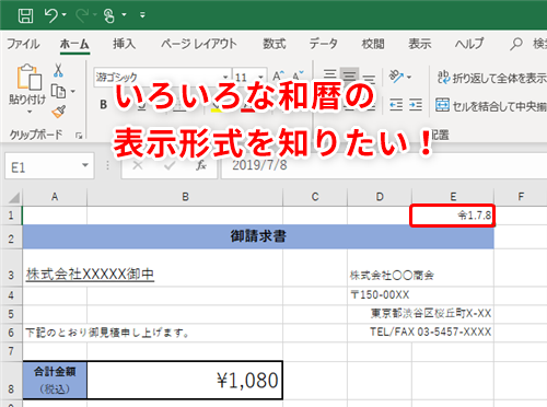 【Excel】「令和1年7月8日」を「R1.7.8」や「令1.7.8」と表示したい!エクセルで和暦の表示形式をカスタマイズするテク