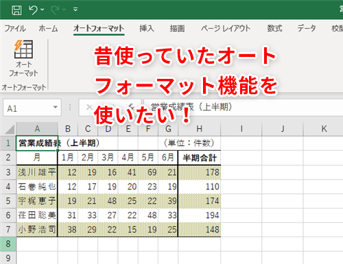 【Excel】Excel 2003で使えたオートフォーマット機能はもう使えない?最新版のエクセルで利用できるようにするテク