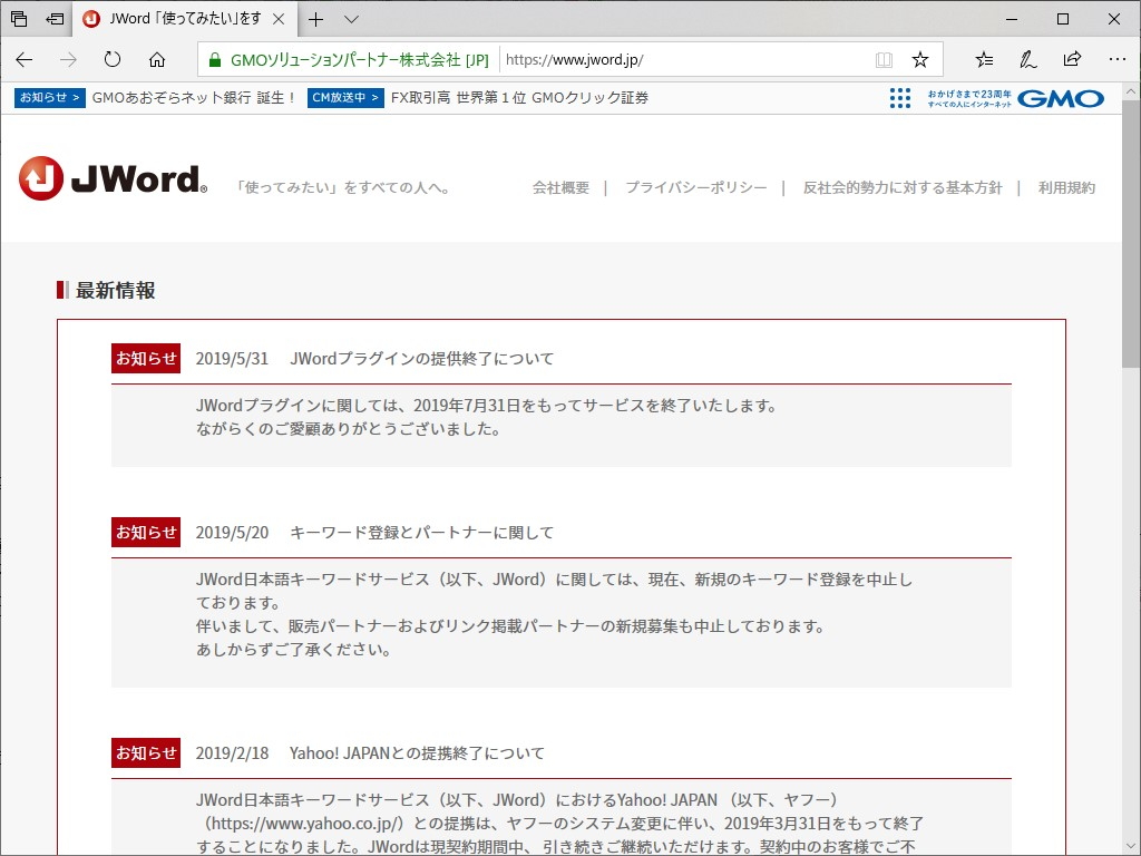 オンラインソフト同梱でお馴染み 「JWordプラグイン」が7月31日でサービス終了へ