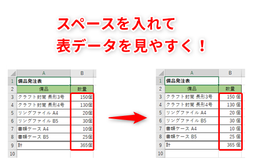 【Excel】「空白」の入れ方で表がぐんと見やすくなる!エクセルで数字と枠線、数字と単位の間隔をちょっと空けるテク