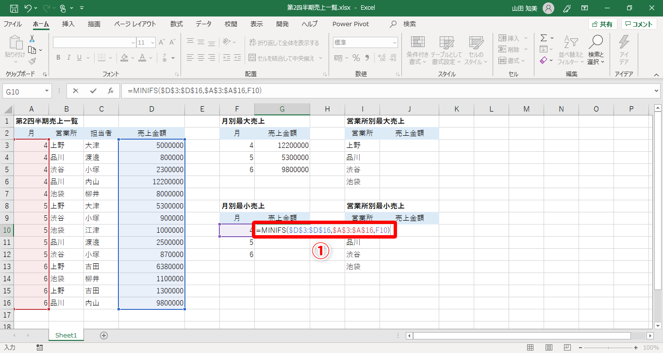 【Excel】売上一覧表から月ごとの最大売上や最小売上を求めたい!エクセルで簡単に特定条件の最大・最小値を出すテク