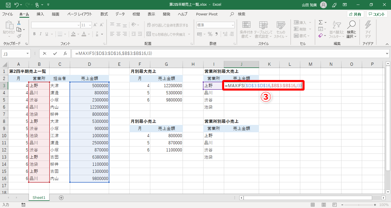 【Excel】売上一覧表から月ごとの最大売上や最小売上を求めたい!エクセルで簡単に特定条件の最大・最小値を出すテク