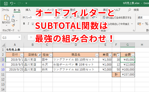 【Excel】SUMIF関数いらず!エクセルのオートフィルターとSUBTOTAL関数で特定条件のデータを集計するテク