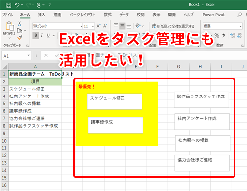 【Excel】“カンバン方式”風のタスク管理をエクセルで!テキストボックスの意外な活用方法