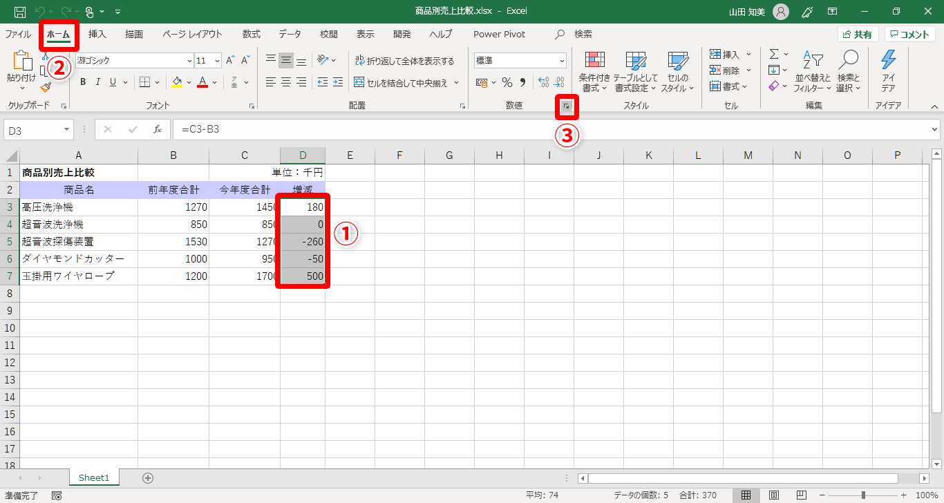 【Excel】負の数の先頭に▲を付けて赤色の文字で表示させたい!エクセルでマイナスの数字を強調するテク