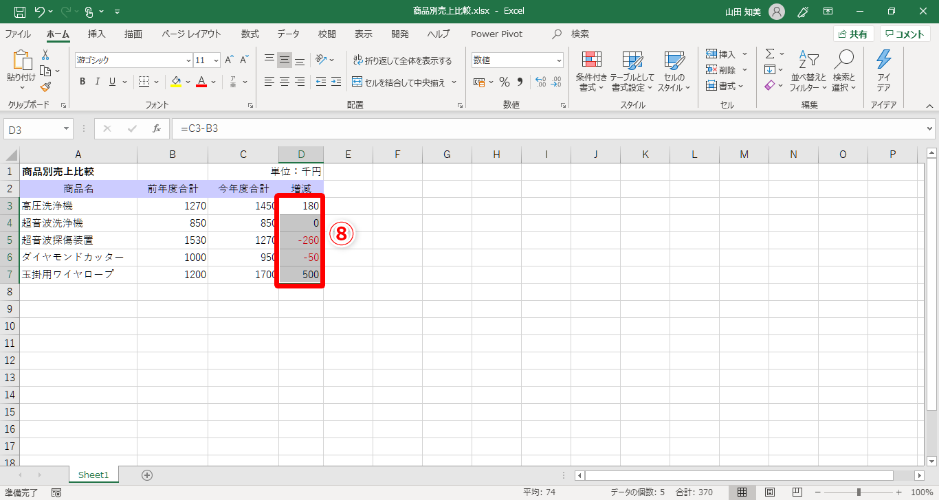 【Excel】負の数の先頭に▲を付けて赤色の文字で表示させたい!エクセルでマイナスの数字を強調するテク