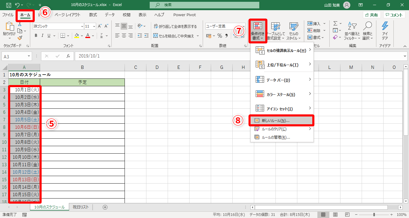 【Excel】即位礼は祝日!?Excelのスケジュール表で自分が定義した祝日に色を付けるテク
