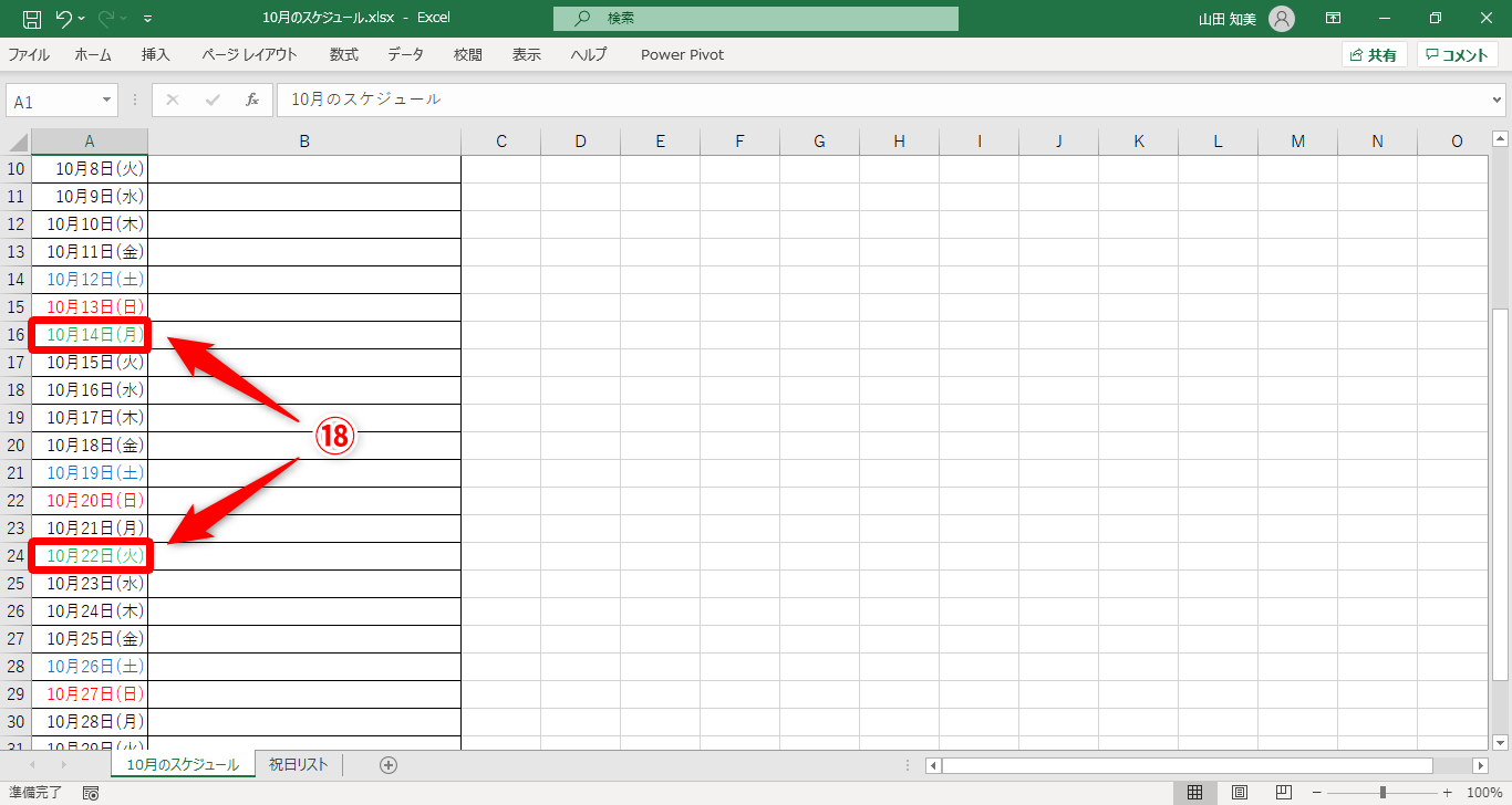 【Excel】即位礼は祝日!?Excelのスケジュール表で自分が定義した祝日に色を付けるテク