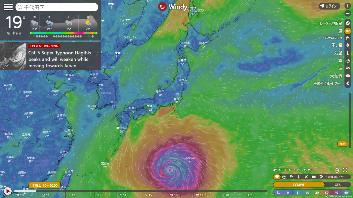 台風19号は今どこにいる? → ググると“Google マップ”で確認できるらしい