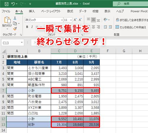 【Excel】集計作業を3倍速で完了!?複数個所にある小計や総計をワンクリックで計算できる[Σ]ボタン活用法