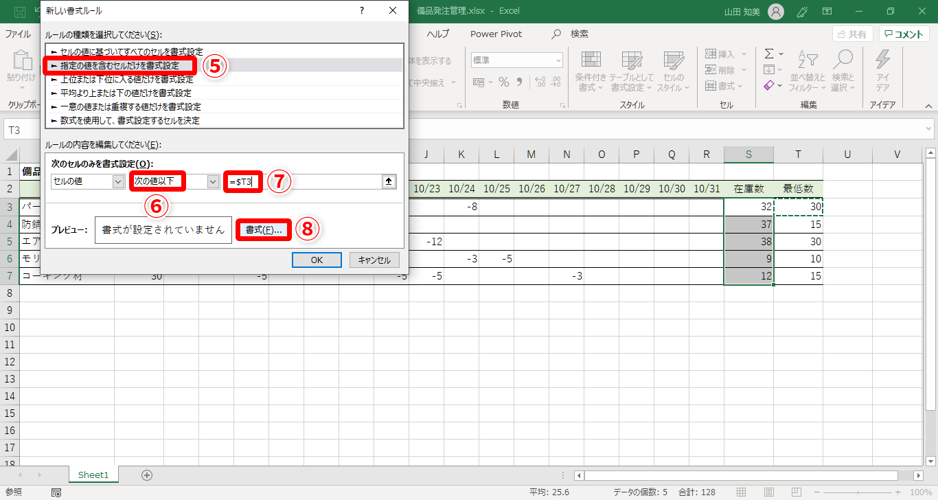 【Excel】在庫が少なくなるとエクセルの管理表が教えてくれる!備品の発注を忘れないためのテクニック