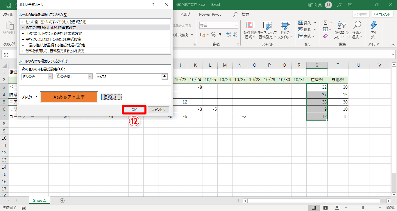 【Excel】在庫が少なくなるとエクセルの管理表が教えてくれる!備品の発注を忘れないためのテクニック