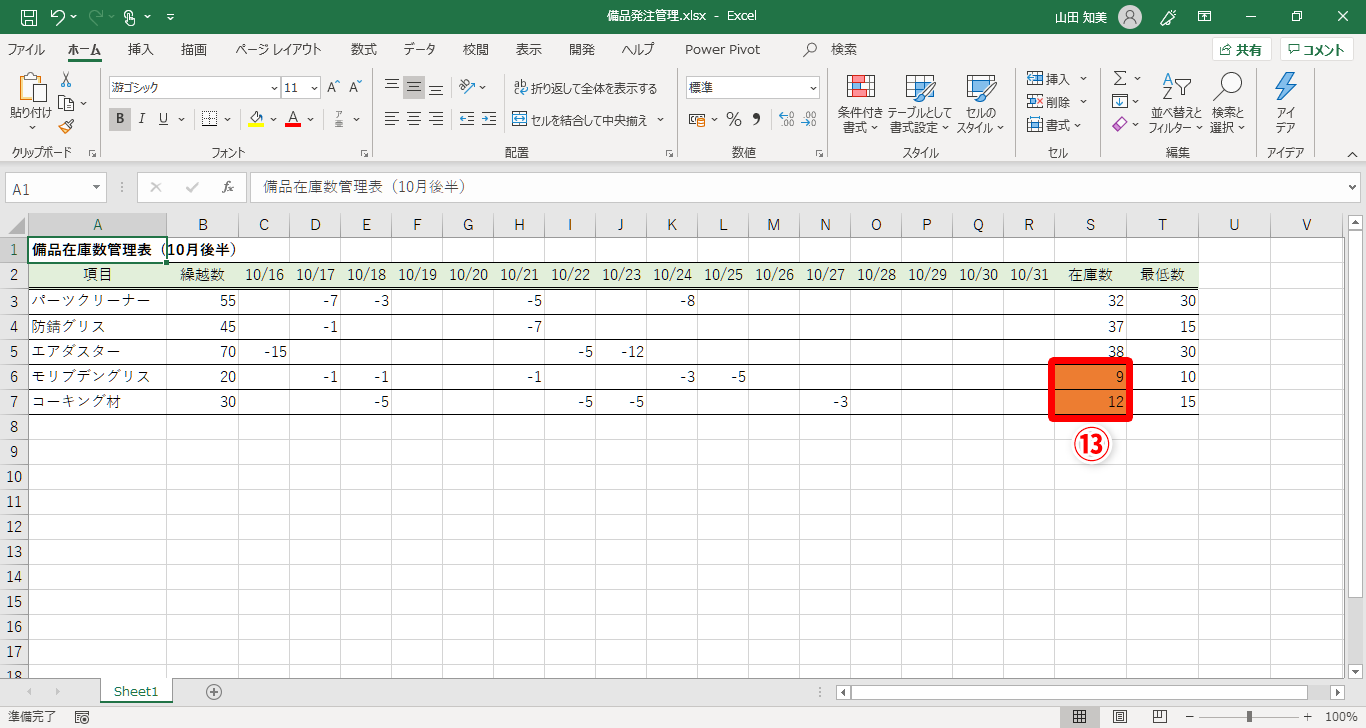 【Excel】在庫が少なくなるとエクセルの管理表が教えてくれる!備品の発注を忘れないためのテクニック